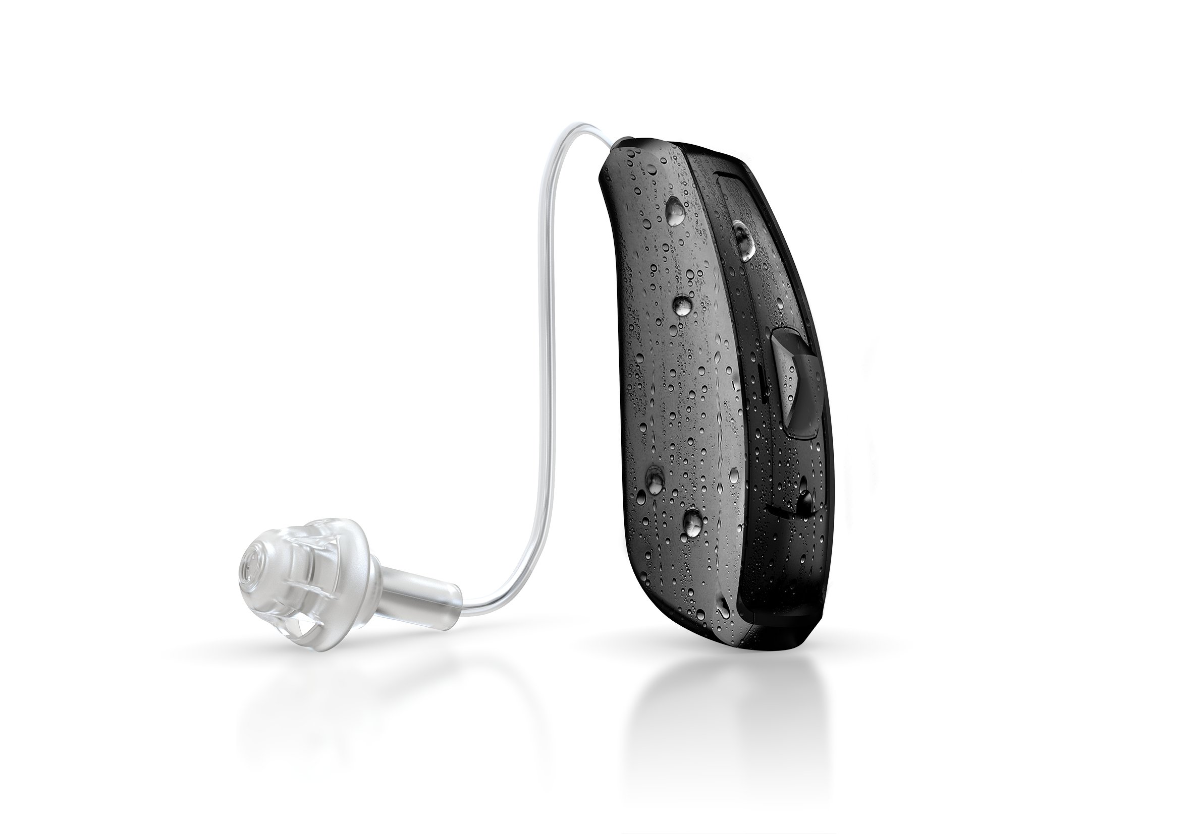 Цифровой мини-заушный с выносным ресивером (RIE) расширенного уровня функциональности, может быть настроен с 4-мя различными уровнями мощности.